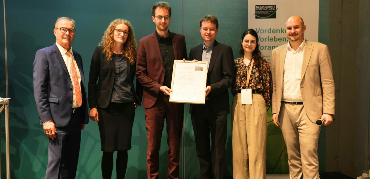 f.l.t.r.: Jörg Schmidt, KSU-Manager, Julia Lehrhaft, Federal Ministry for the Environment, Climate Action, Nature Conservation and Nuclear Safety (BMUKN), Dr. Andre Hirsch ARGUS Additive Plastics, Sascha Hirsch, ARGUS Additive Plastics, Nadja Buchenau, KSU-Gutachterin, University Kassel, Philipp Andree, KSU-Managing Director, Foto: Klimaschutz-Unternehmen e.V.
